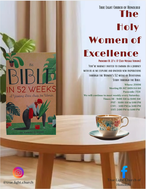 We are the precious jewels found on the crown that shines upon our Lord and Savior, Jesus Christ. In our group we learn, nurture, and build up one another through studying in the Bible. We engage and interact with impactful literature that aligns in the biblical statues found in the word of God. The Holy Women of Excellence encourages each individual women to develope a strong prayer filled life. We excercise unique skills with one another to increase our faith on a daily basis as the Holy Women of Excellence.